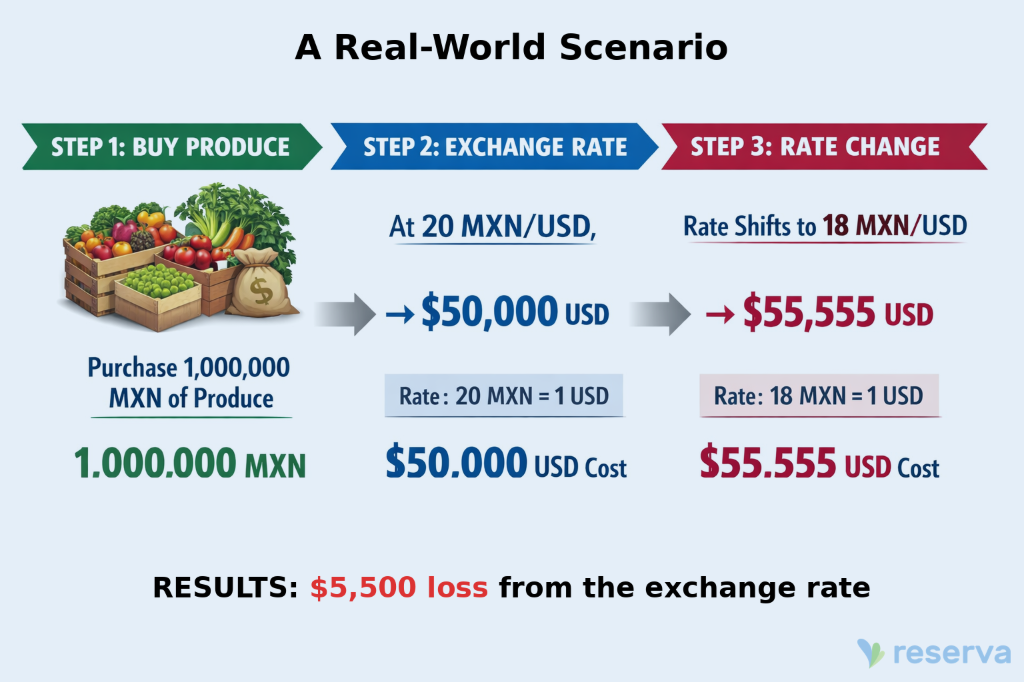 Cross-border trade between the U.S. and Mexico is one of the most active corridors in the produce industry. Mexican suppliers often price in MXN while U.S. buyers operate in USD. And the exchange rate can move significantly within days.