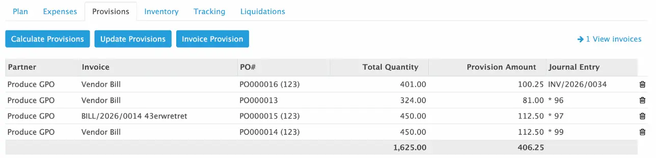 Provisions/Rebates: accrue balances and release later via “Invoice Provision”